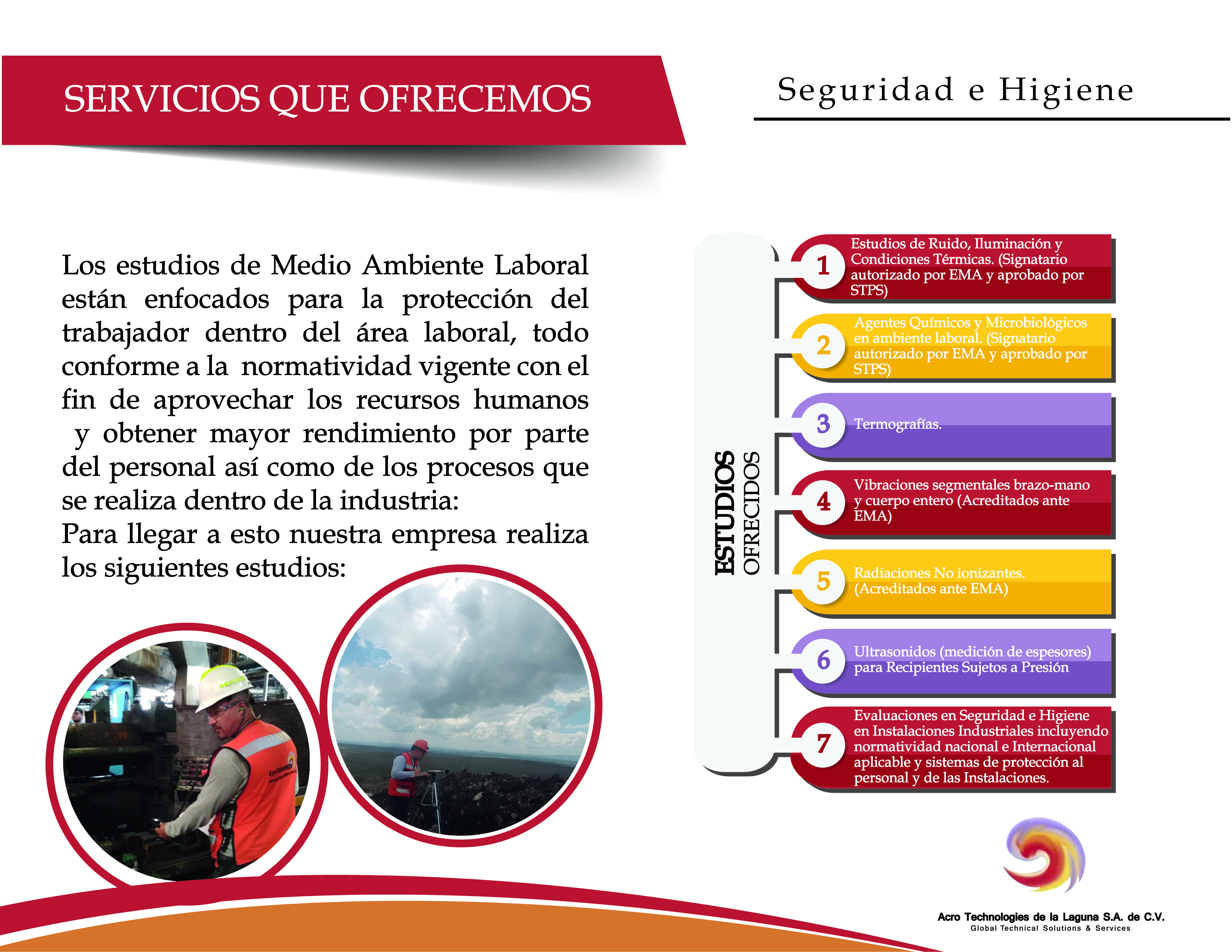 Acro Technologies de la Laguna S.A. de C.V. cuenta con personal debidamente capacitado, acreditado y aprobado para la prestación de servicios en los siguientes rubros: